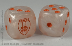 Personal dice of Coach Traveller. I got this dice made especialy for me to my 60th birthday and to honor my work for this website since nearly 20 years now. Just 12 dice of those exist! 🙂