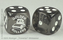 „The Golden Rollers dice are the Series II prints for the Golden Rollers Blood Bowl League, a Southern California-based league (2021) that has since fully moved to FUMBBL. The dice were first distributed in June 2024. There were 70 total produced. They commemorate Seasons 8 through 14 of the league. They were distributed to league members as well as to some opponents at 2024 Amorical Cup + Spike, as well as to a few local opponents at CULT tournaments in the Pacific Northwest.