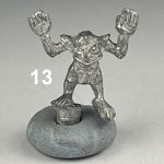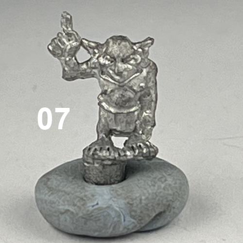 For the Snotling Team of the 2nd Edition there are 35 (!) different miniatures. Better known are the 6 a little larger miniatures of this team, which are standing at their own bases. The other 29 Snotlings are smaller and, at older game editions, were put as groups at larger square bases. These little ones were sculpted by Kevin Adams.